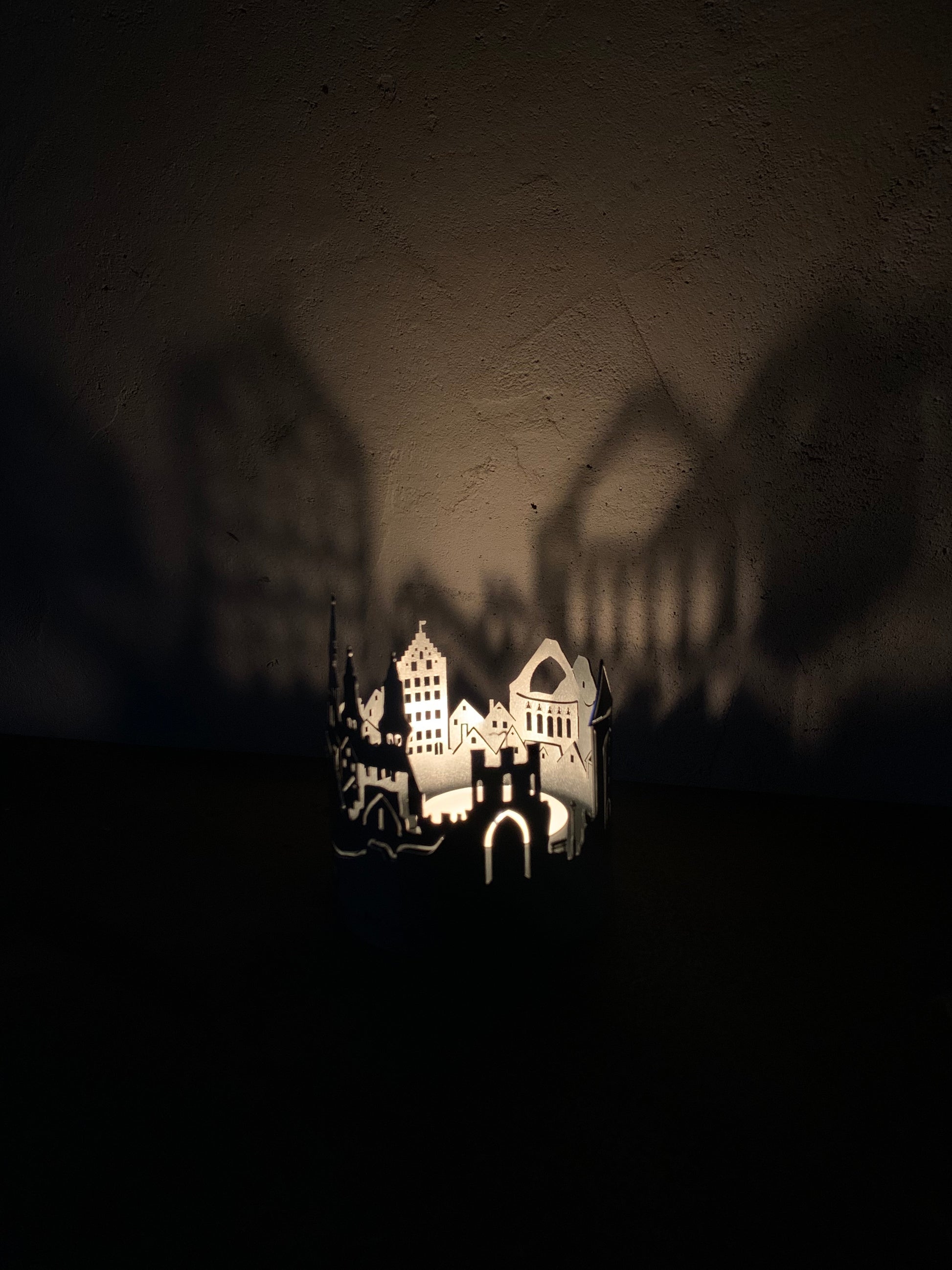 Visbylyktan- En lykta i Visbys vackra siluett. Tillverkad i borstat, galvaniserat stål speglar den känslan av den historiska ringmuren och de kalkade fasaderna som präglar världsarvsstaden. När lyktan tänds sprider den ett varmt, stämningsfullt sken och ger en levande, tredimensionell känsla av innerstadens unika arkitektur.